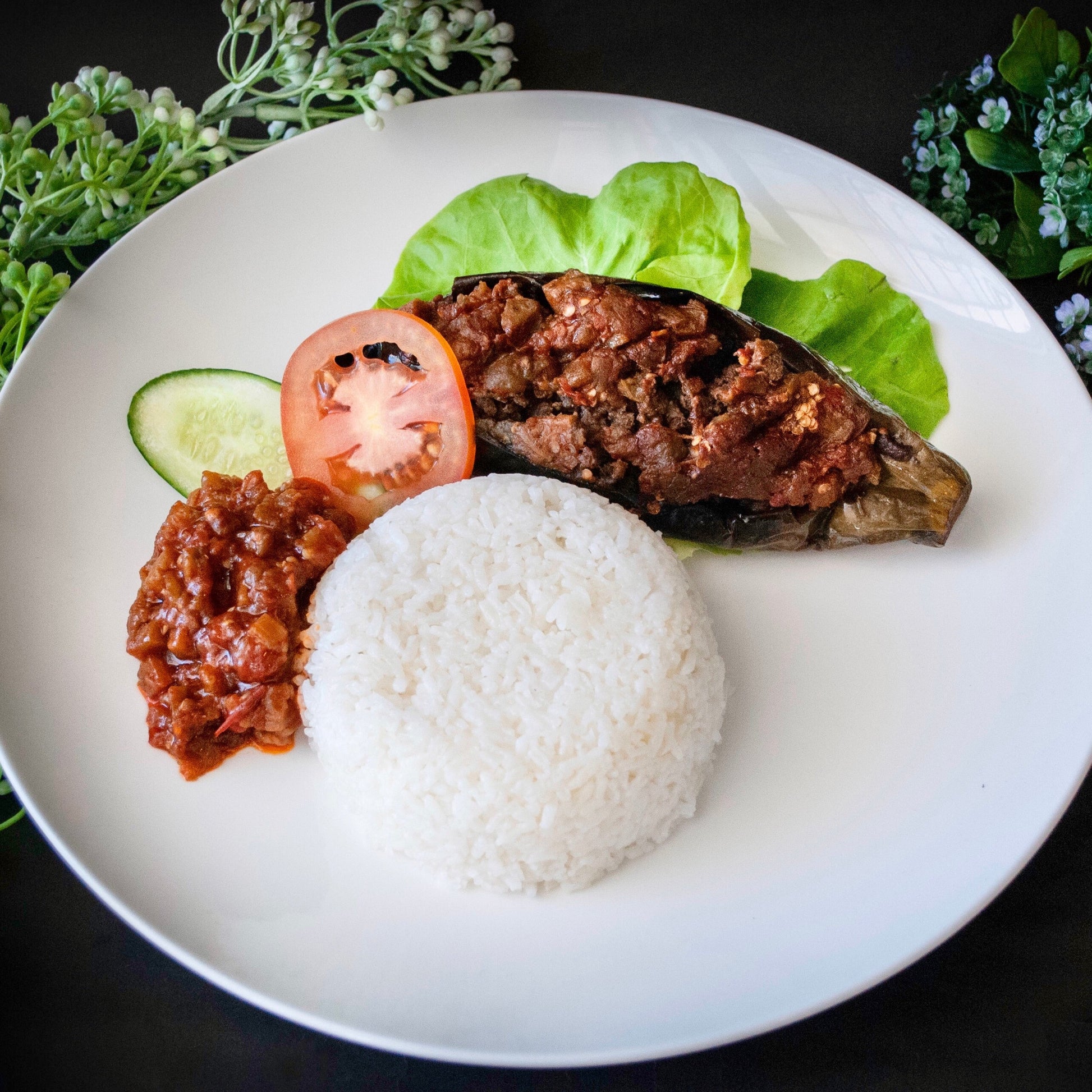 This Dolma consists of eggplant stuffed with minced beef. This eggplant goodness is also served with buttered rice!
